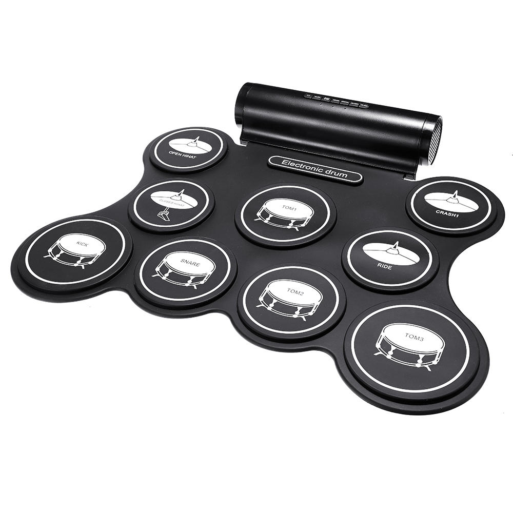 iword G3009L 9 Pad Hand Roll Drum Portable Electronic Drum Kit USB MIDI Drum with Drumsticks Foot PedalsBuilt-in high capacity li-polymer battery, with the tone of real drum set, dual speakers symmetric system to simulate real hitting effect and standard USB output plug to realize the complete combination of drum studying and entertainment.Description:Material: Environmental Waterproof SiliconeColor:WhiteOutput: DC9V 2.5WInput: DC5V 2.5WNet Weight: 1100gDimension: 500mm*380mm*58mmFeatures:-Realistic tone, simulating a real drum set hitting effect.-Various playing styles included po p music, rock music, Latin style, electronics etc.-Pedal controller to emulate the real Hi-hat effect.-The sound of the hi-hat pad and the snare pad can be alternated to make it easy for different drum players.-Making music by connecting computer via standard midi out jack (5 pin jack) and playing every drum games.-Bass drum by using pedal controller to simulate the real drum practicing and train a good coordination.-Dual speakers to present the high sound quality.-Connecting earphone without bothering anyone.-AUX jack synchronous practicing through mobile phone or computer playing music.-Built-in metronome to train the good rhyth m.-Small and light, easy to carry around.Packing List: 1 * Electronic Drum2 * Drum Sticks1 * Pedal Set1 * USB Cable (1.2m)1 * 3.5mm Audio Cable(0.5m)1 * User Manual (English)