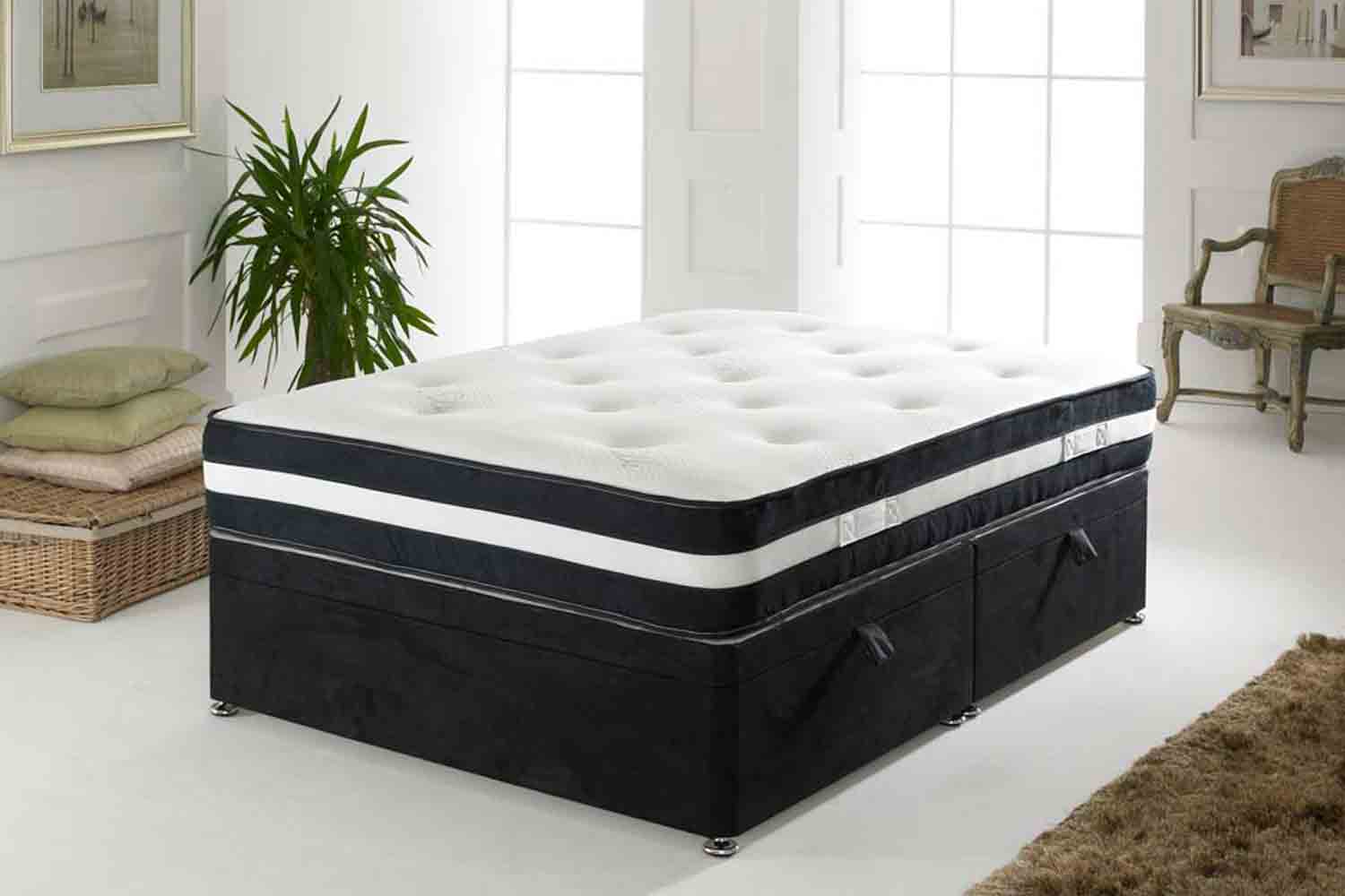 The Joseph Airflow Aurora Pocket Sprung Series 1800 Divan Bed utilizes pocket springs with additional layers of high-quality padding and is hand-tufted by craftsmen from the UK. It is also covered in a wonderfully smooth and silky finished cotton cover that is cool and luxurious to the touch while allowing you to sleep comfortably throughout the night while the striking faux suede sides, which also incorporate a breathable strip, that is durable yet still attractive. There is also flag stitched turning handles on each side of the mattress for easy care. The matching divan base comes with end or side storage in any combination.