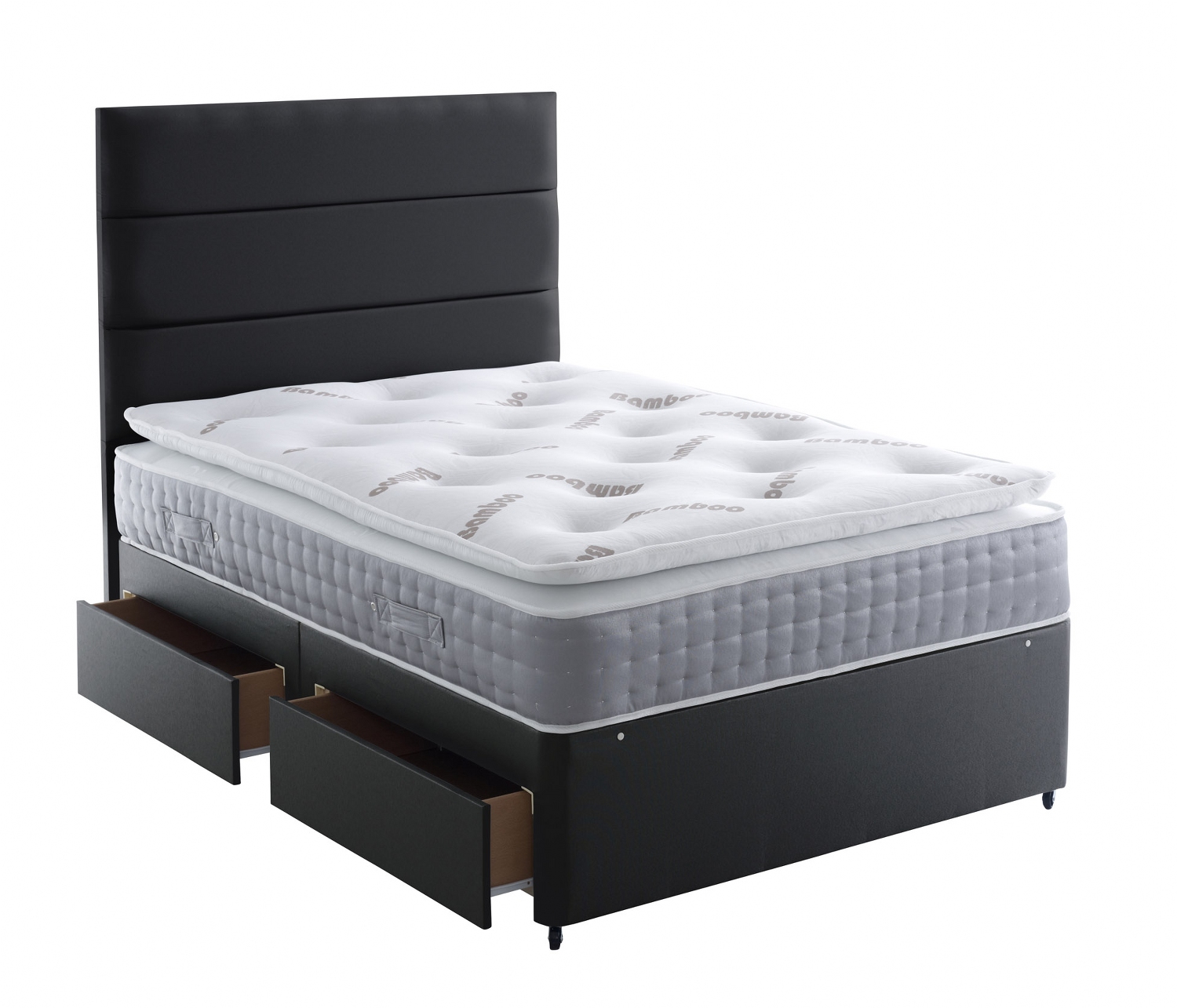 A sumptuous addition to the Joseph collection of divan beds comes the Joseph Bamboo Pocket Series 3000 Memory Foam Pillow Top Divan Bed with a deep layer of luxury Memory foam. The sumptuous mattress features a pocket spring system. Each single pocket spring is able to move and react to your own bodies movement to ensure you are fully supported from head to toe. Wool fillings and hypo allergenic fillings top the springs which brings irresistible comfort. The 12″ deep hand tufted mattress is completed with luxury cotton fabric along with extra edge support. Turning handles and side stitched borders complete the pillow top mattress.The Joseph Bamboo Pocket Series 3000 Memory Foam Pillow Top Divan Bed is completed with a platform top base. The base is available to be purchased with a variety of storage facilities and can be completed in selection of fabrics.The High density memory foam pillow top will soften with reaction to body heat, returning to its original shape once the pressure is removed, memory foam is also renowned for helping you to maintaiin a correct posture and align your spine horizontally when lying on your side, the memory foam is hypo-allergenic which helps keeps the mattress free from any dustmites. The exclusive Bamboo fabric helps keep the mattress fresh and dry for may years to come.