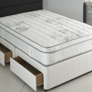 The Joseph Crown Krona Divan Bed is our extra supportive and firm feeling 1500 count pocketed spring system that has been selected as a foundation for this bed, virtually eliminating roll together. To this we have added a layer of soft, natural latex, mattresses with latex are the fastest growing sector of the market due to it’s pressure relieving properties and also it’s resilience and luxury. The pillow top design features a gorgeous quilting pattern and the soft touch stretch fabric cover makes a real fashion statement and will make the bed the focal point in any bedroom. There are flag stitched turning handles on each side of the mattress for easy care and also comes with brass vents that will ensure that the mattress stays fresh and healthy for many years. Like all beds in the Crown range, this base can be made in a number of gorgeous colours and is also available with side or end storage in any combination.