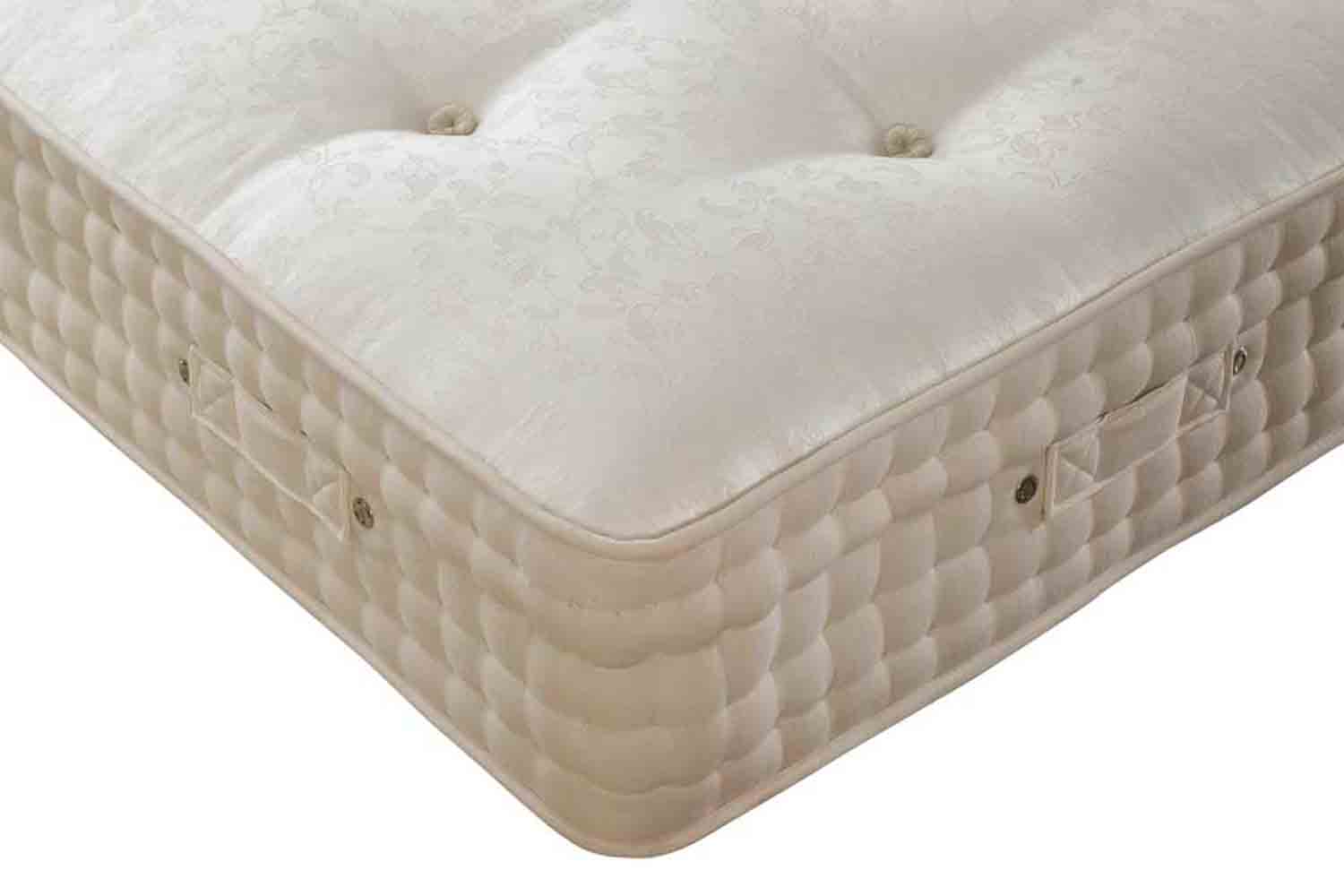 The Joseph Hallmark Pocket Sprung Series 8000 Mattress is of a great quality due to It being constructed with pockets which means there are an incredible 72,000 spirals of springs within the mattress making it very responsive to your shape and movement. The Hallmark Series 8000 has flag stitched turning handles and accompanying them are vents that allow air to flow through whenever pressure it applied to parts of the bed, which helps the mattress stay fresh and last many more years than the mattresses that don’t have this addition. The Hallmark Series 8000 is manufactured in the UK, it is also hand-tufted and hand side-stitched. which adds strength to the mattress edges with a stylish and luxurious feel. The Hallmark Series 8000 is covered in 100% cotton with generous wool padding which gives a superb level of comfort worthy of anyone’s comfort needs.