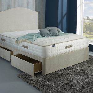 Like the Stress Free, the Stress Free Elite is a hand-tufted mattress utilising open coil springs with addition edge support. However it incorporates extra fillings to provide a firmer sleeping environment. In addition to a cover that promotes airflow this mattress also boasts breather vents in the border to help to guarantee a cool and restful sleep. The matching divan base comes with end or side storage in any combination.