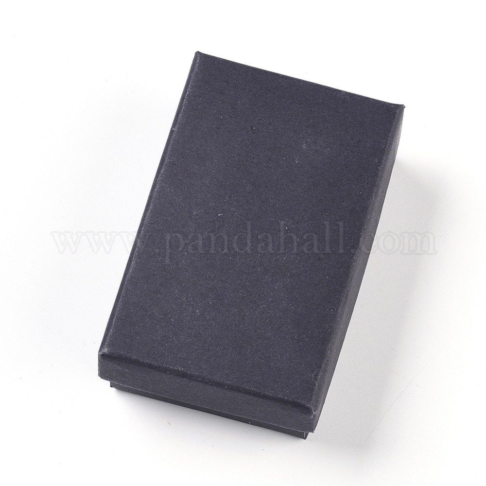 Kraft Cotton Filled Cardboard Paper Jewelry Set Boxes, for Jewelry and Gift, Rectangle, BlackSize: about 5cm wide, 8cm long, 2.7cm thick.