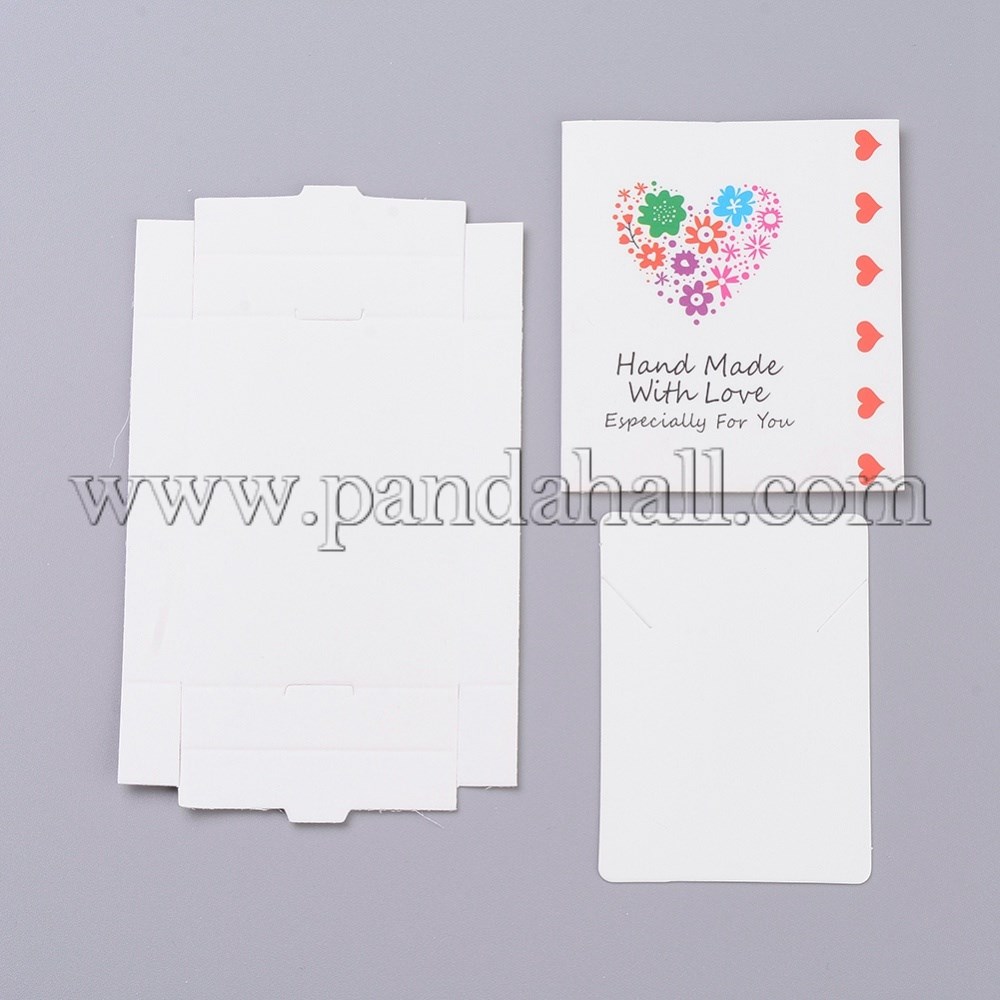 Kraft Paper Boxes and Necklace Jewelry Display Cards, Packaging Boxes, with Word and Flower Pattern, WhiteSize: