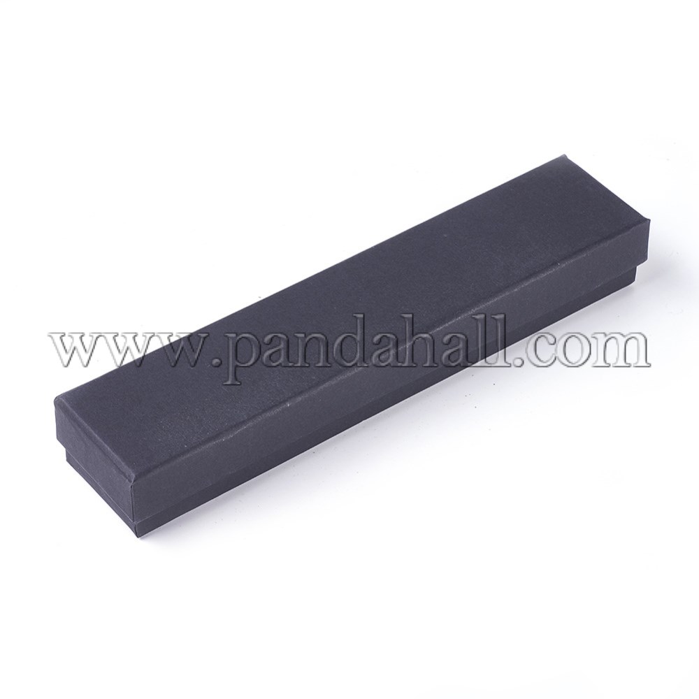 Kraft Paper Cardboard Jewelry Boxes, Necklace Box, Rectangle, BlackSize: about 5cm wide, 22.5cm long, 3cm high.