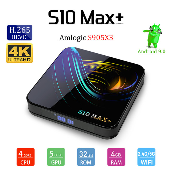latest s10 max+ android 9.0 tv box amlogic s905x3 quad-core 4gb/32gb built-in 2.4g/5.8gwifi&bluetooth smart media player xl