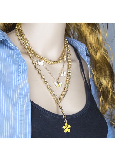 Layered Gold Metal Chain Butterfly Necklace FREE Shipping & 30 Days Easy Return