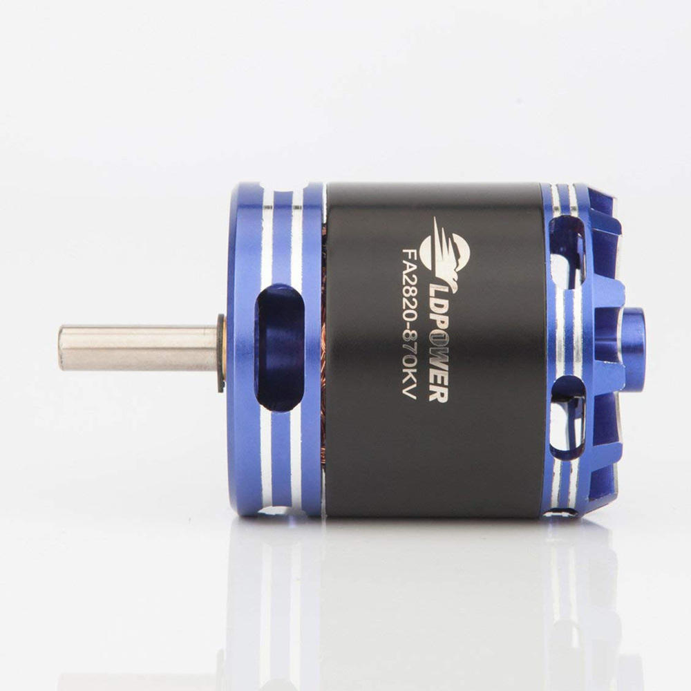 LD POWER FA2820 2820 KV870 870KV 3-5S RC Brushess Motor for RC Quadcopter Drone Fixed Wing FPV GimbalFeatures:1.High Quality Materials: with long life Japanese NMB ball bearings, efficient stator steel and oxygen free purecomer wires, CNC machined aluminum case.2.High Temperature Resistance.3.Brushless Motor: light weight, 870KV high RPM and powerful brushless motor bring you a stimulated flight.4.Patented balance techniques.5.Suit for Fixed Wing RC Camera Drone FPV Racer Racing Quadcopter.Description:1.This professional brushless motor comes with high quality.2.Powerful motor with light weight is sure to bring you stimulated flight.3.It is a good choice for RC drone fans.Specifications:Brand name: LDPOWERItem name: Speed Shield FA2820 Brushless MotorColor:BlackblueKV: 870KVConfiguration:12N14PNo.of Cells(Lipo):3-5SShaft diameter: 5No load current: 1.7A(870KV)Voltage:11.1-18.5vMax sustained current:57AMax Power: 1054.5WResistance: 30.2Wire length: 1105mmTop mounting hole:12, 3*M2Bottom mounting hole:19-16, 4*M3Stator size:28*20mmMotor Size:35*42mmWeight:160gPackage information:Package Size: 90*55*45MMPackage Weight: 198gBlack box packagePackage included:1 x Speed Shield FA2820 870KV Brushless motor1 x Bullet Head1 x Prop Clip2 x Pad1 x Protective Ring1 x Cross Mount1 x M2.5*6 Cup Screw4 x M3*6 Screw1 x M3*3 Screw