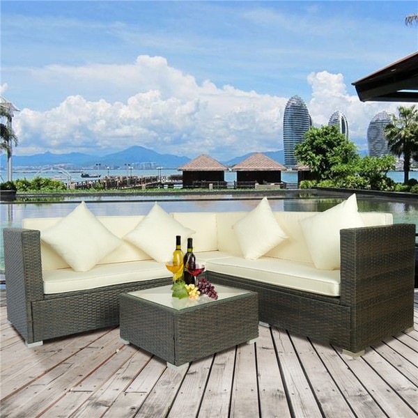 leisure zone 4pcs big beige cushion outdoor pe rattan wicker patio sofa sectional furniture set conversation set