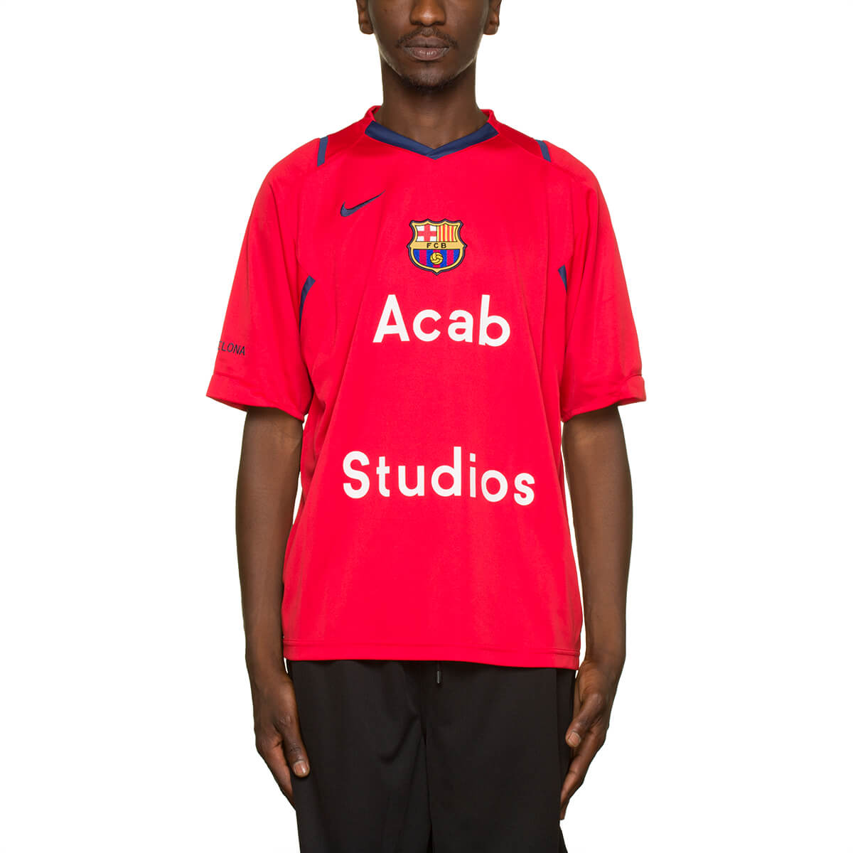 Acab Studios t-shirt from Les Vêtements de Football collection in redThis vintage t-shirt from Les Vêtements de Football collection is part of The Tribute Issue by NSS sports. The Futbol Club Barcelona tee by Nike, here in red, comes in a comfortable fit and features a patch at front, embroidered Nike logo, Dri-Fit technology and a print at front and back. This from Les Vêtements de Football is a vintage t-shirt: every imperfection is considered part of the garment and makes it a unique piece. – Vintage Nike jersey- Barcelona team- Composition: 100% Polyester- Code: acab studios – L size
