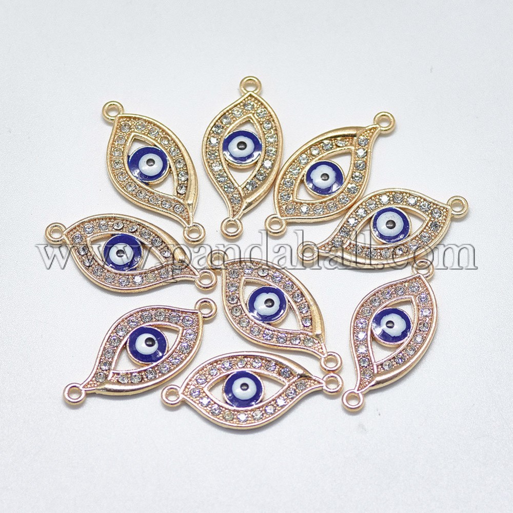 Light Gold Plated Alloy Links, with Crystal Rhinestone and Enamel, Evil Eye, BlueSize: about 27mm long, 12.5mm wide, 2mm thick, hole: 1.4mm.