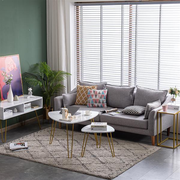 Living Room Furniture Marble Iron Feet Coffee T Side 2 Sets [84 x83 x46cm] White tea table