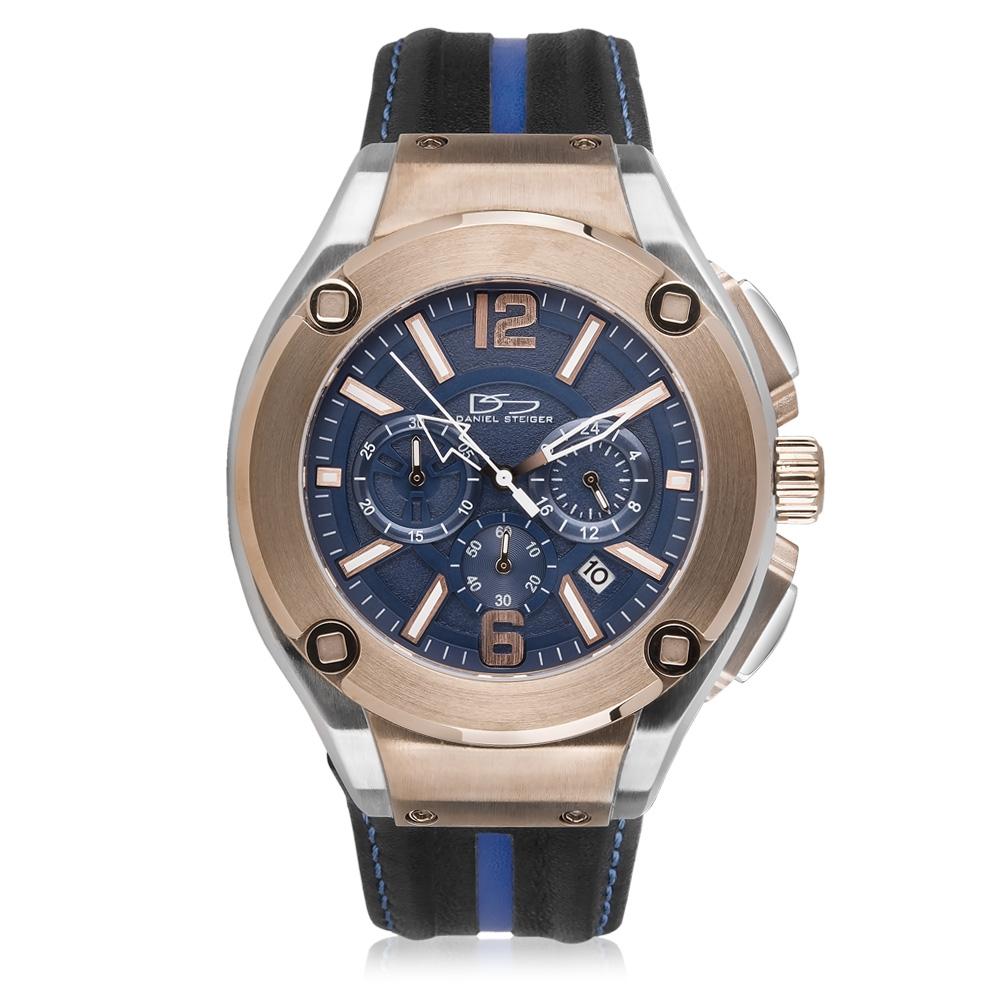 Our latest addition to the Daniel Steiger family of fine timepieces is the Magnitude. This magnificent watch has of course been engineered from the best 316L premium grade solid stainless steel. A sporty multi-layered leather strap adds to the stylish two tone look of each piece while the precision stopwatch movement featuring 24 hour and date functions is backed with our 5 year unlimited movement warranty. Magnificent presentation case included.