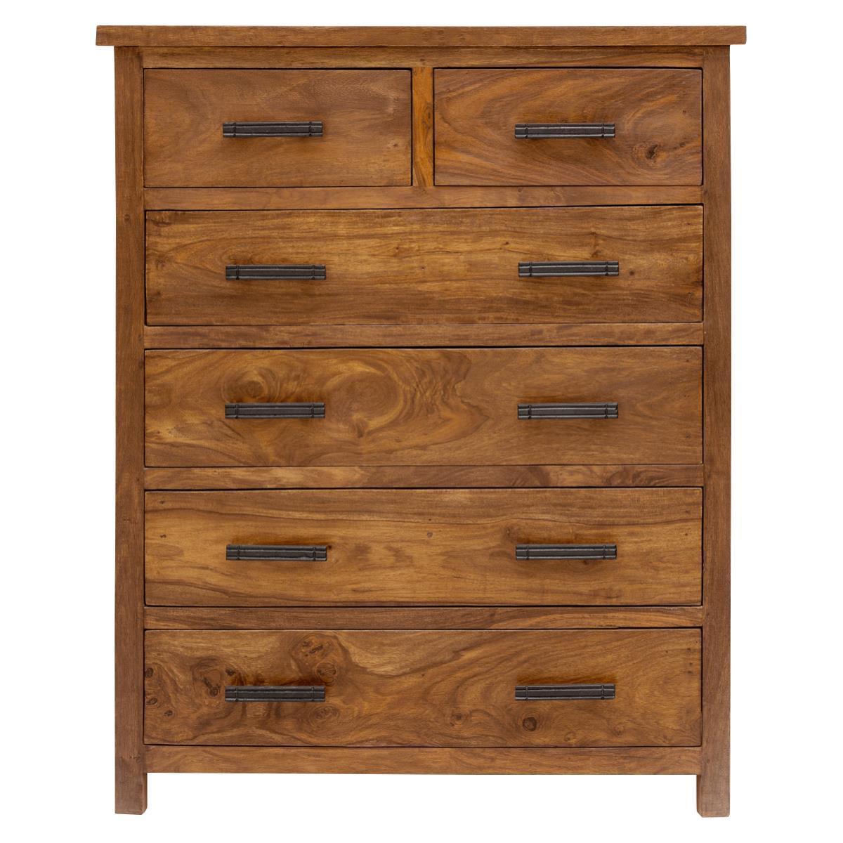 A signature piece in the Mallani collection and one of our top sellers, this tallboy chest has four full-width and two half-width drawers – the classic configuration to lay everything out in a perfectly ordered fashion. And if you’re looking for lovingly made and fairly traded solid wood furniture, this chest will not disappoint. It’s handcrafted in India by one of our oldest suppliers (since 2001), uses responsibly sourced sheesham wood, and has a hand waxed finish which protects and reveals the elegant grain and glowing rich colour of this fast-growing hardwood. Keyline metal handles enhance the soothing symmetry that defines the Mallani range, and although created for the bedroom, this chest of drawers is a perfectly adaptable piece that’s as lovely for linen as it is for a sea of sweaters and socks. 100% Sheesham wood (Indian Rosewood) with a hand waxed finish. Fair trade furniture imported directly from Northern India.