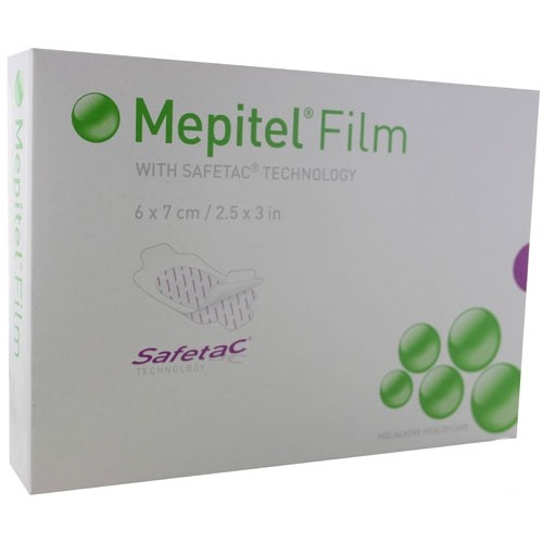 Mepitel Film DressingsMepitel Film Dressings are gentle, transparent breathable film dressings for a wide range of minor wounds such as category 1 and 2 pressure ulcers, superficial skin injuries and superficial burns. They use the unique Safetac adhesive which minimises pain and trauma before, at and after dressing changes. They limits the risk for damage of newly formed tissue, seal the wound margins and reduce the risk of maceration. Mepitel Film Dressings can be used alone to protect fragile and sensitive skin or in conjunction with other products, for example as a protective cover for open surgical wounds, and in combination with gels and ointments. They can be used underneath fixation tapes and devices, forming a protective landing zone for the fixation tape.Mepitel Film Dressings provide a flexible, transparent covering to protect the skin or wound from microbial contamination, fluid strike through and from other external contamination while conforming to surface irregularities and body contours. They maintain a moist environment even though the vapour permeability allows excess moisture to pass away from the skin. Mepitel Film Dressings are available in packs of 10 in four sizes: 6.5cm x 7cm, 10.5cm x 12cm, 10.5cm x 25cm and 15.5cm x 20cm.