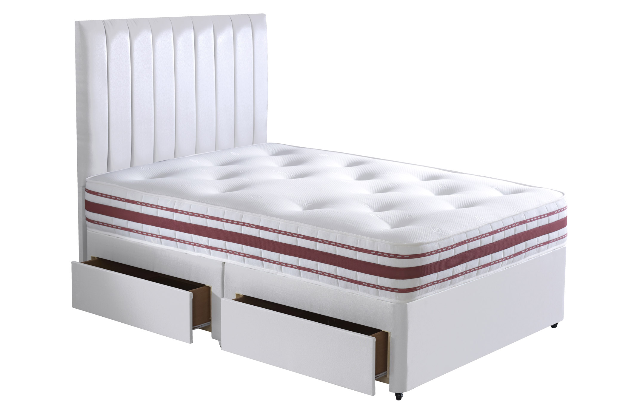 The Millionaire Pocket Spring Series 1500 Orthopaedic Divan Bed is medium pocket spring mattress that has been designed to maximise support by using high specification UK manufactured Bonell springs and luxury re-bounce fibre fillings for extra longevity. Deep layers of fillings cover the spring system to provide a plush sleeping domain which ensures a restful night’s sleep. The luxurious fabric used to cover the mattress is soft to the touch and flexible. There is also flag stitched turning handles on both sides of the mattress for easy care and brass vents which will guarantee that the mattress stays fresh and healthy for many years to come, the mattress is completed with a 14-inch deep divan base available in a wide selection of fabrics & colours.