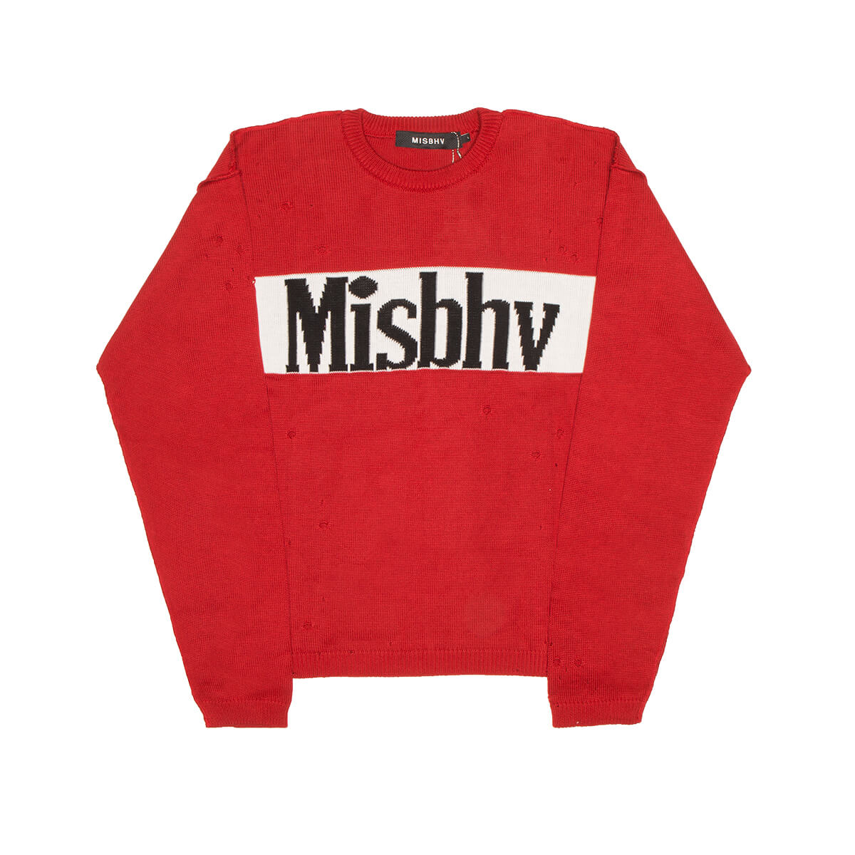 Yankee Destroyed sweater from the F/W2019-20 MISBHV collection in redThis sweater from MISBHV new collection comes in a comfy fit. The crew neck sweater, here in red, is made of acrylic and cotton and features a destroyed effect.- Yankee Destroyed Sweater- Crew neck- MISBHV Logo- Composition: 50% acrylic 50% cotton- Made in Poland- Code: 119M142- The model is wearing an international L size