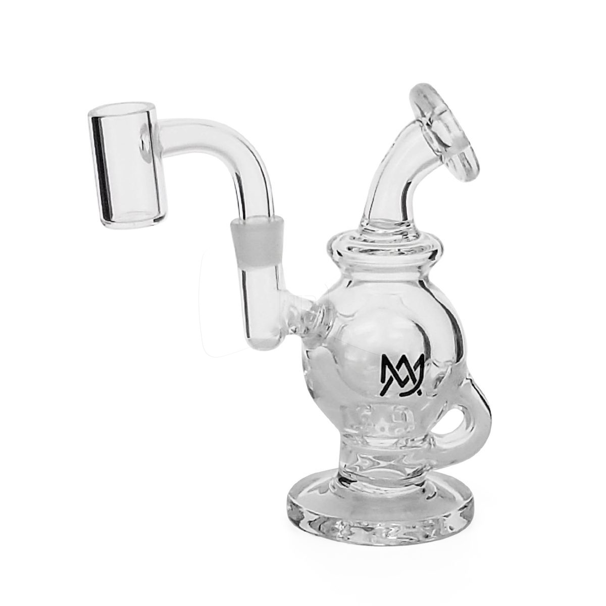 This round glass piece doesnt just look sleek and modern, its form is part of its function. The unique shape keeps the water where it needs to be- away from your mouth. With its low lying percolator and spill-proof design, this piece will definitely make its way into your collection and rotation.