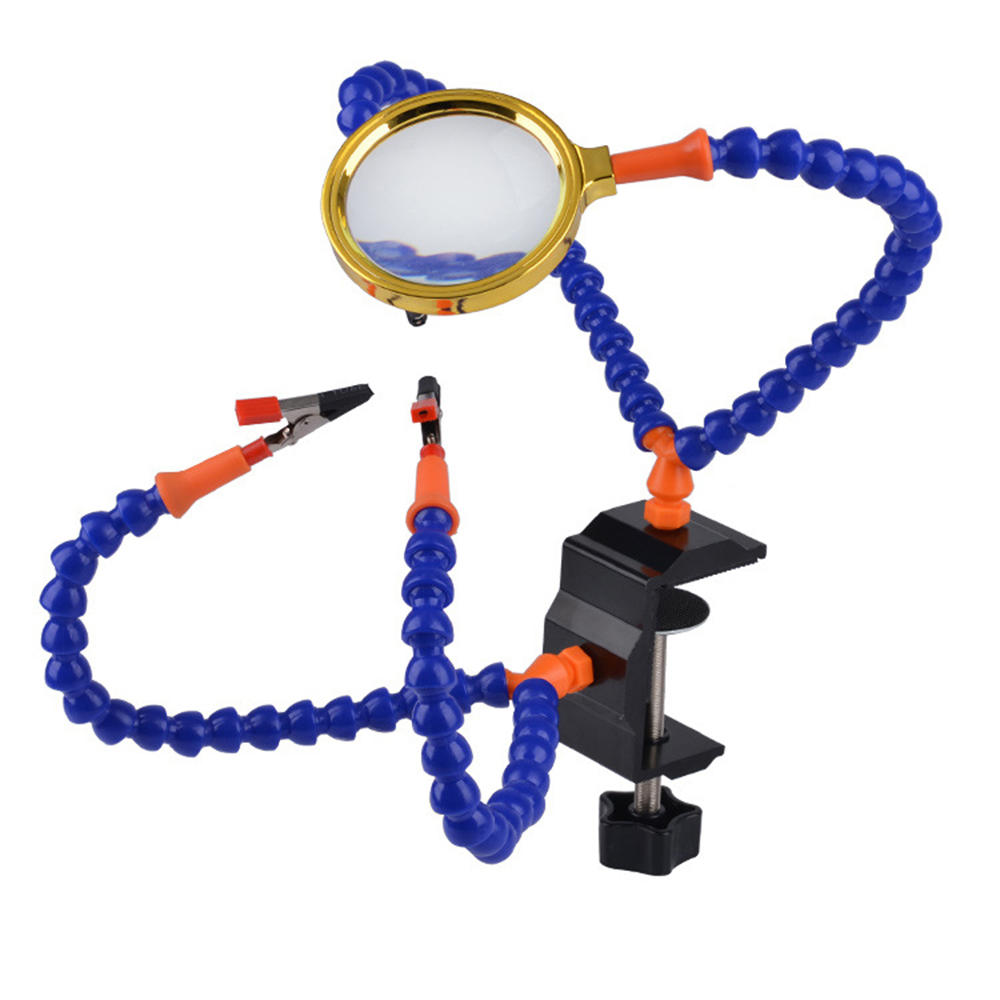 Specification:Universal Joint Pipe Length: 300 mmUniversal Tube Material:PlasticFeature:1.Flexible arms helping hands are easily positioned where you want them. Eliminates the frustration of traditional helping hands.2.With Magnifier, we can weld more clearly3.Black soft rubber chuck. Clamp the table tightly,prevent slipping.4.Silicon alligator clip tips for the heat resistance.5.Very suitable for the complex difficulty welding such as model airplane repair, easy to clamp the solder and operation.Package including:1XRubber Chuck1XMagnifier2/3/4XAlligator Clips2/3/4XUniversal Joint Pipe