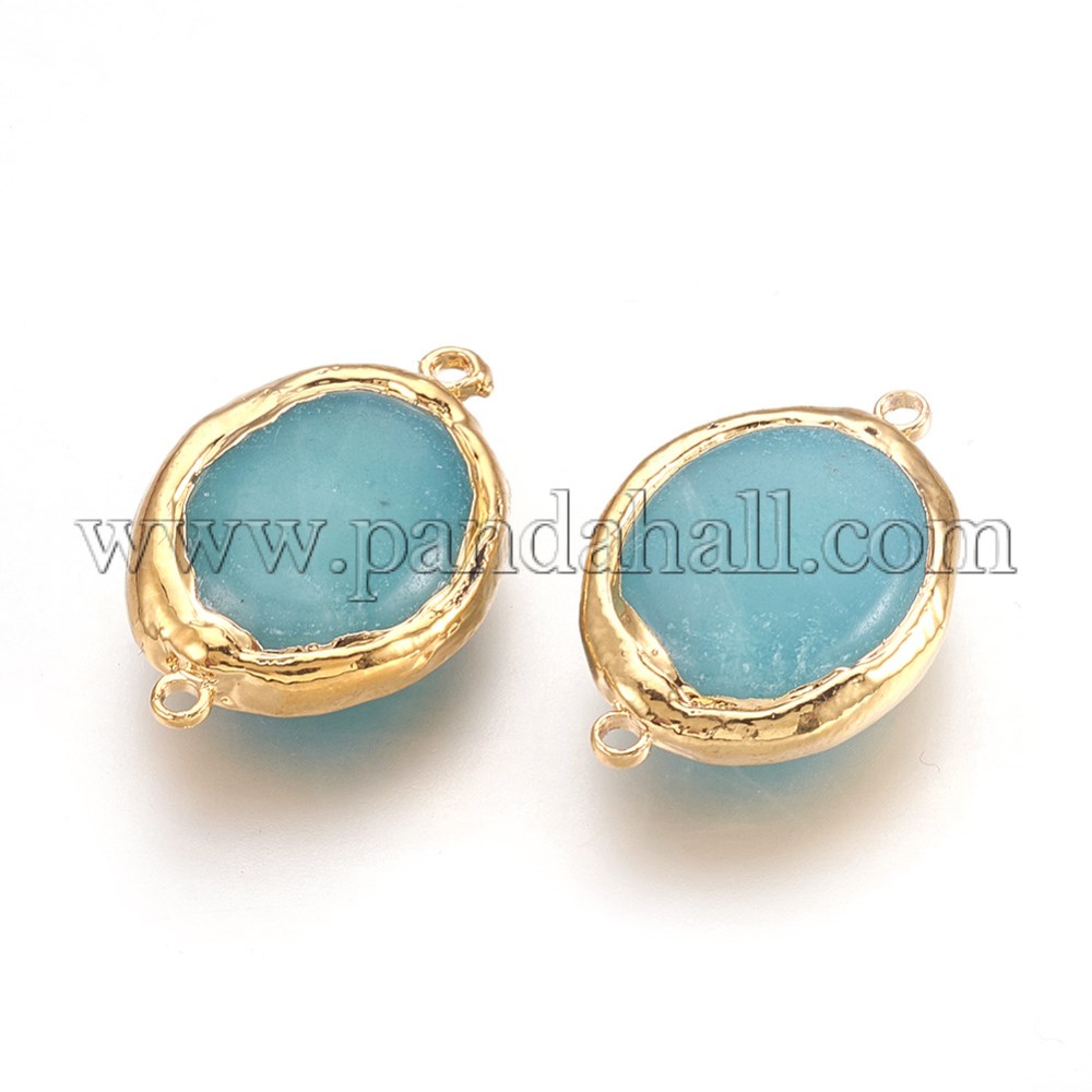 Natural Amazonite Links/Connectors, with Brass Findings, Oval, Golden, Size: about 21~21.5mm long, 14~14.5mm wide, 6~6.5mm thick, hole: 1.4mm.