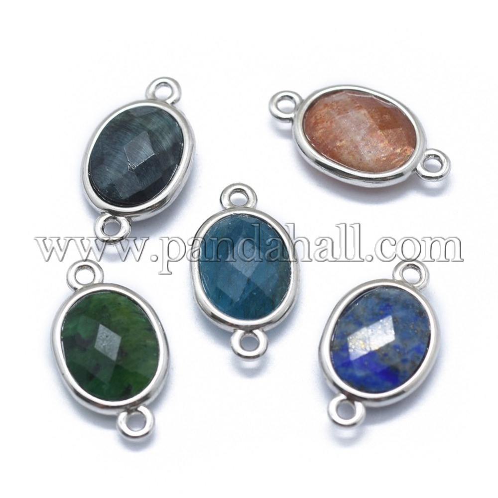 Natural Mixed Gemstone Links/Connectors, with Brass Findings, Faceted, Oval, PlatinumSize: about 9.5mm wide, 17~17.5mm long, 3.5~4.5mm thick, hole: 1.4mm.