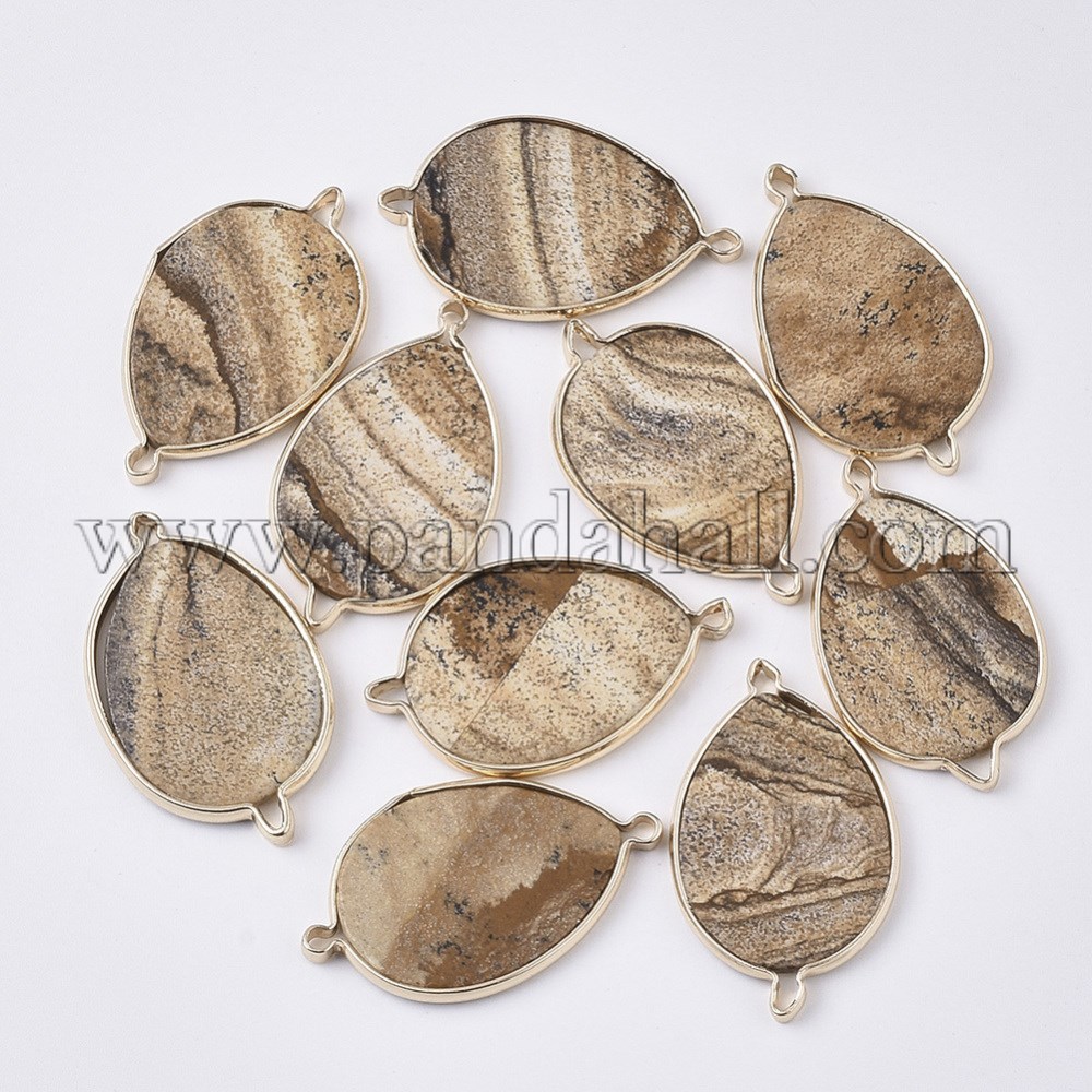 Natural Picture Jasper Links/Connectors, with Golden Tone Brass Open Back BezelsSize: about 33mm long, 19mm wide, 2mm thick, hole: 1.8mm.