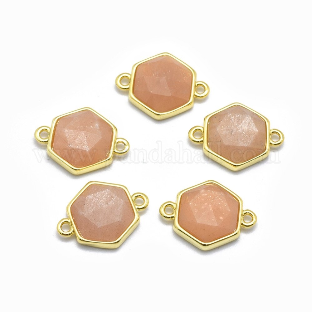 Natural Sunstone Links/Connectors, with Golden Tone Brass Findings, Hexagon, FacetedSize: about 16mm wide, 12mm long, 5mm thick, hole: 1.2mm.