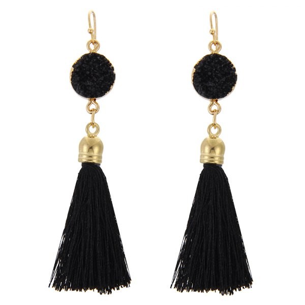 nature Stone Charm Vintage Classic Medieval European Style Rhinestone Rong Pendant Exquisite Drop Tassels Earrings