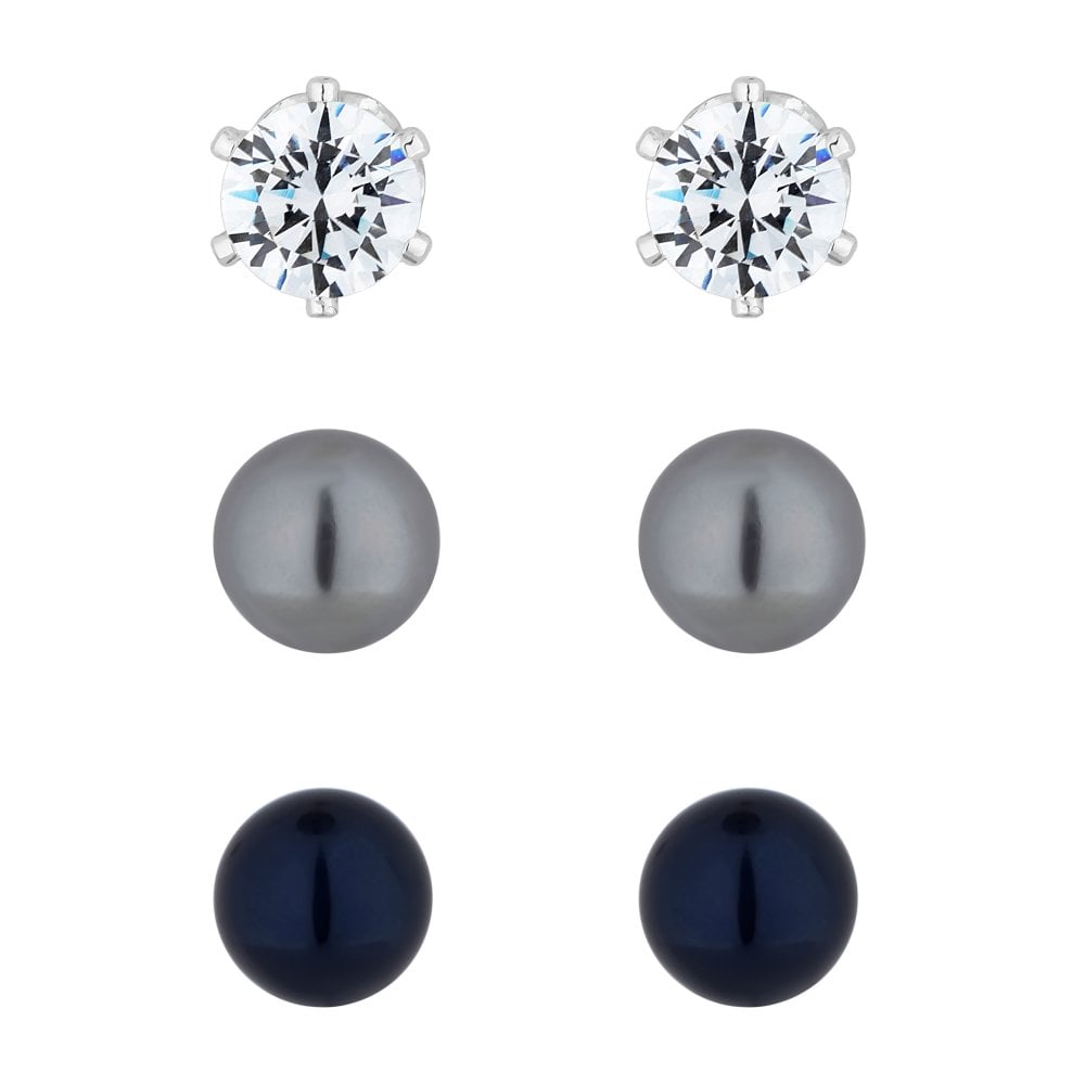 Navy And Cream Pearl And Crystal Stud Earring Set