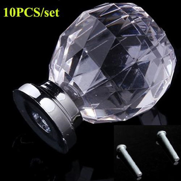 new 10pcs/set diam 30mm round crystal glass ball design acrylic handle knobs.product introduction:.– condition: 100% brand new.– size:diameter approx 30mm.– color: transparent like picture shows.– material:acrylic.– quantity:10pcs/a set + 10pcs screws.– type:cystal ball design transparent door knobs.– using occation:can be used for cabinet, drawer, chest, bin, dresser, cupboard, etc as a handle..– brilliant color sparkles like diamonds from the diamond cuts..– clear acrylic drawer pull