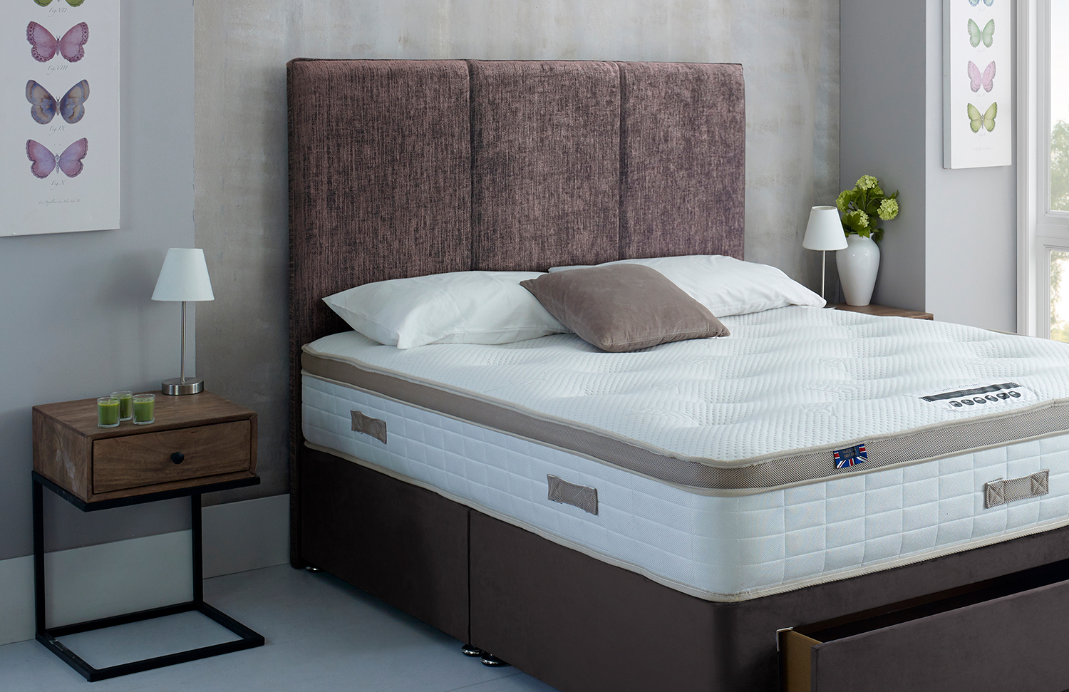 The Nova floor standing headboard fits perfectly with a selection of stylish divan and adjustable beds. Made with sturdy chipboard, the headboard is strong and has a thick layer of hard wearing foam which makes it comfortable to lean against if you want to sit up in bed. Made in the UK with a wide selection of fabrics and colours to choose from you will be sure to find the colour that suits you.