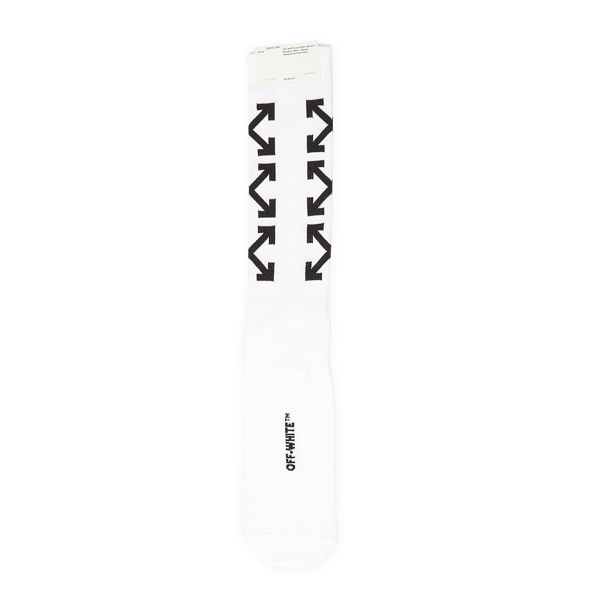 Arrows socks from the S/S2017 Off-White c/o Virgil Abloh collection in whiteThese socks represent a classic, inevitable piece from the Off-White c/o Virgil Abloh collections. Made of soft cotton, the socks come in white with the arrows pattern at upper panels.- White socks- Composition: 100% Cotton- Made in Italy- Code: OMRA006S172850810110- One size