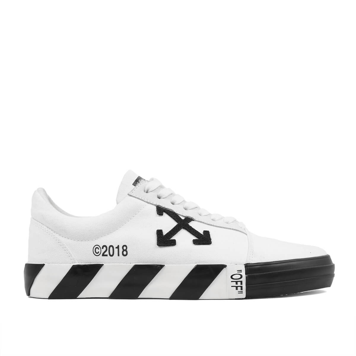 Low Top sneaker from the Pre S/S2019 Off-White c/o Virgil Abloh in whiteThese sneakers are from Virgil Abloh c/o Off-White new collection. The Vulcanised Low Top sneakers, here in white, feature a canvas upper, a rubber outsole and Off-White logo.- Low top sneakers- Rubber outsole- Off-White logo- Composition: Cotton – Rubber- Code: OMIA085R198000160100