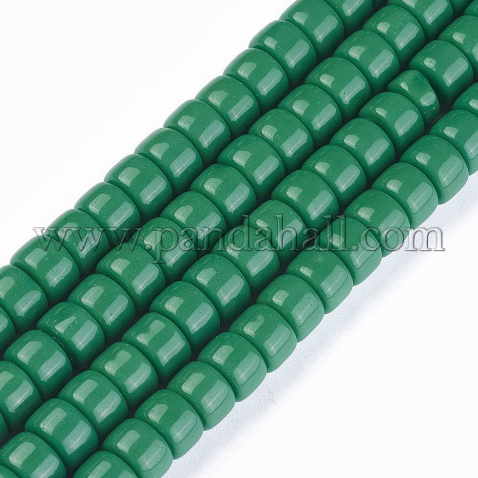 Opaque Solid Color Glass Beads Strands, Column, SeaGreenSize: about 8mm in diameter, 5~6mm thick, hole: 1.5mm, about 69pcs/strand, 15.1″~15.3″(38.5~39cm).