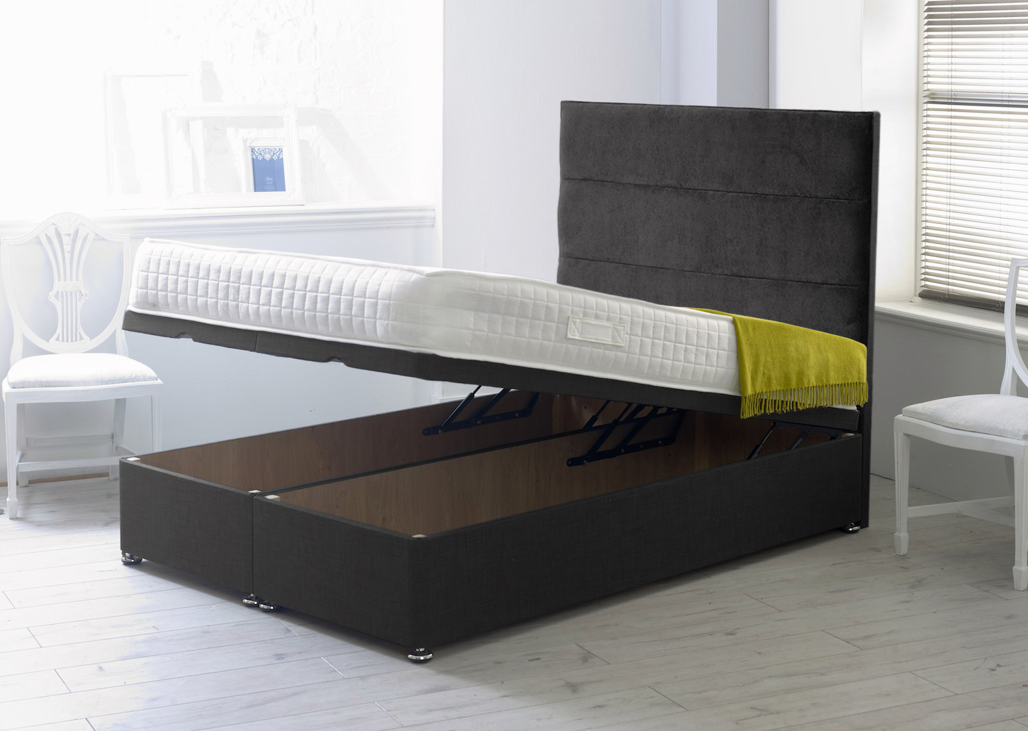 The Luxury Ottoman Base provides great mattress support along with bringing a huge selection of storage space for the bedroom. The platform top ottoman base features gas lift arms which makes it easy and simple for the base to be lifted. A huge variety of storage space sits under the base which is ideal for storing spare bedding and accessories. This base is upholstered in a selection of luxurious fabrics, the total base depth is approximately 14 Inch with a generous 11-inch depth of internal storage space. The mattress is not included but can be purchased separately.