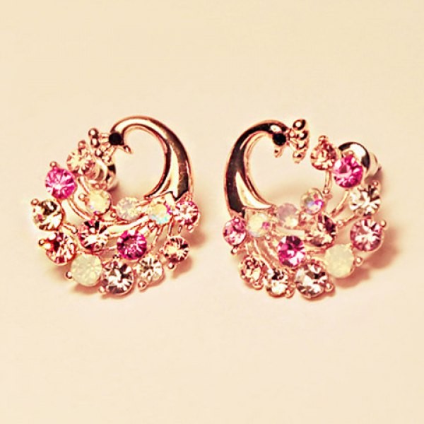 Pair of Peacock Shape Rhinestone Embellished Earrings