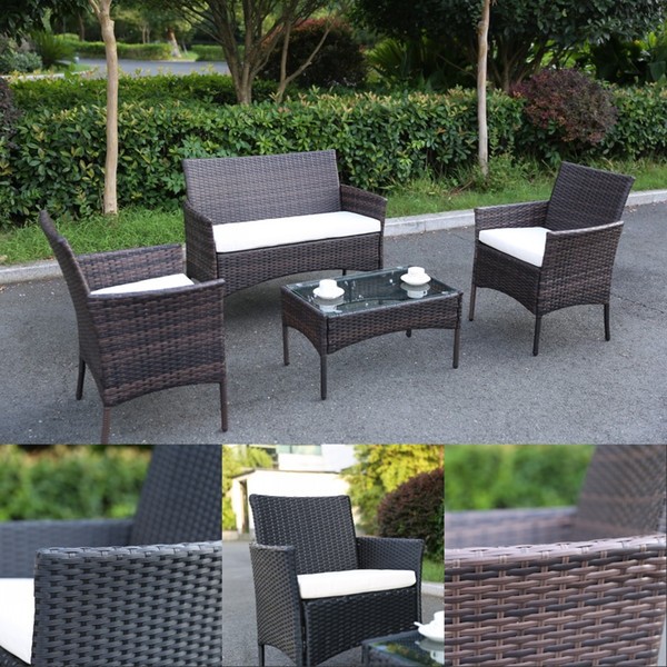 patio outdoor rattan furniture 4 piece brown black 2 armchair coffie table for garden 4 pc garden patio furniture