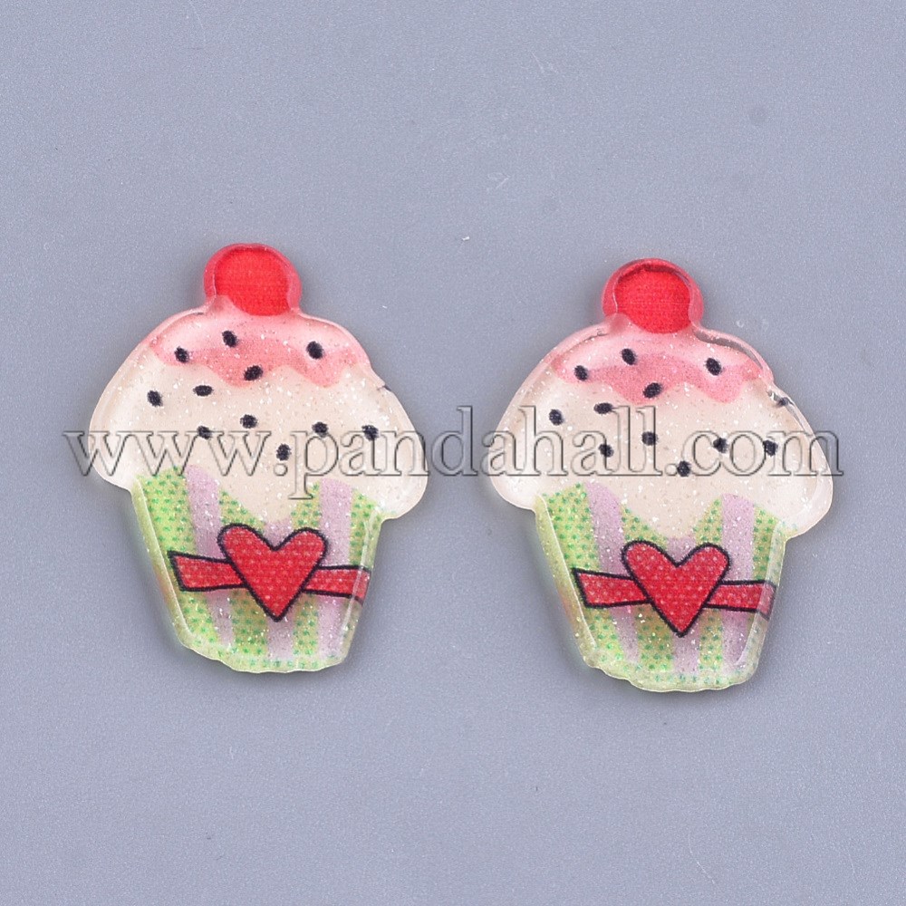 Plastic Cabochons, with Glitter Powder, Cake, ColorfulSize: about 27.5mm long, 20mm wide, 2mm thick.