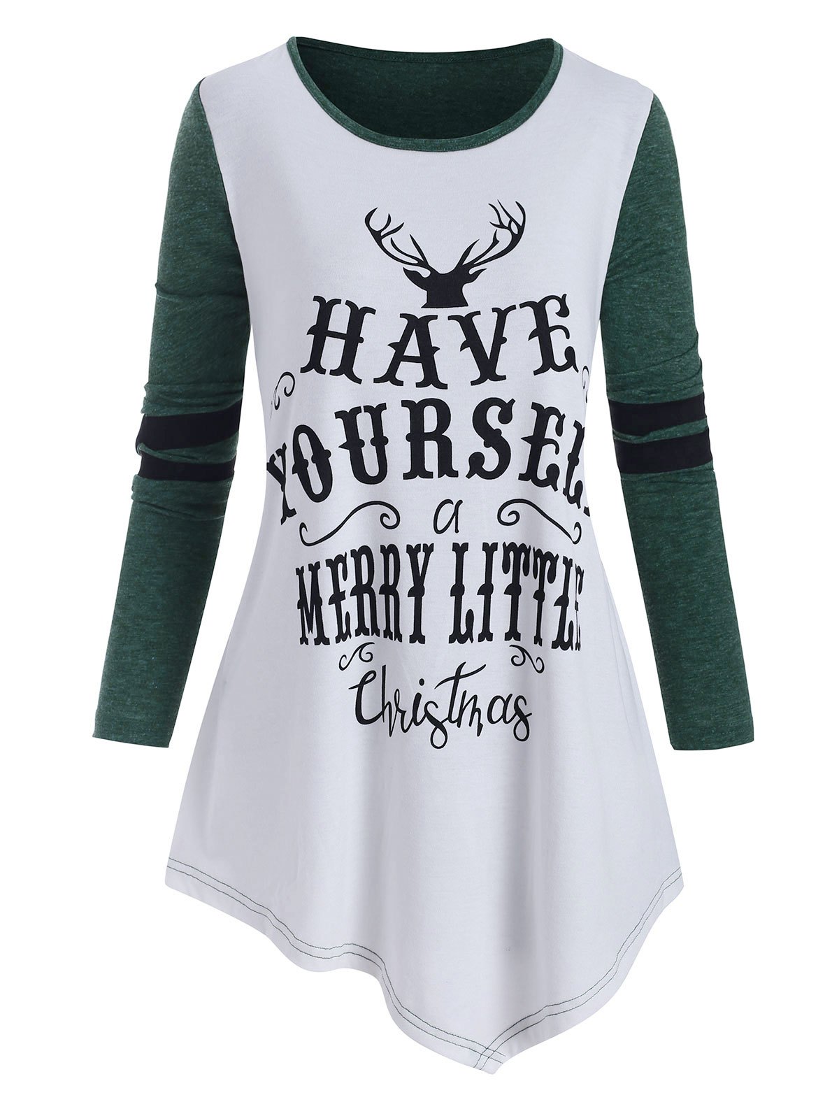 Plus Size Christmas Printed Asymmetric Graphic T Shirt