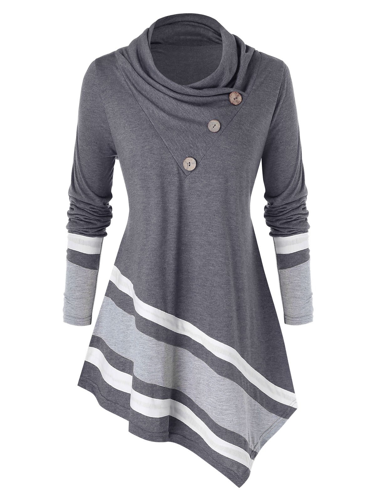 Plus Size Cowl Neck Contrast Trim Asymmetric T-shirt