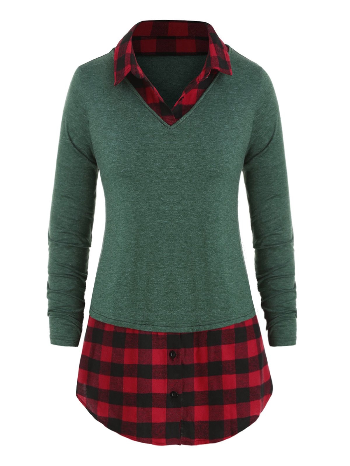 Plus Size Heather Plaid Trim Long Tunic T-shirt