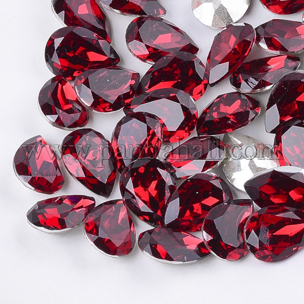 Pointed Back Resin Rhinestone Cabochons, Back Plated, Faceted, Drop, SiamSize: about 9.5~10mm long, 6.5~7mm wide, 4~4.5mm thick; about 600pcs/bag.