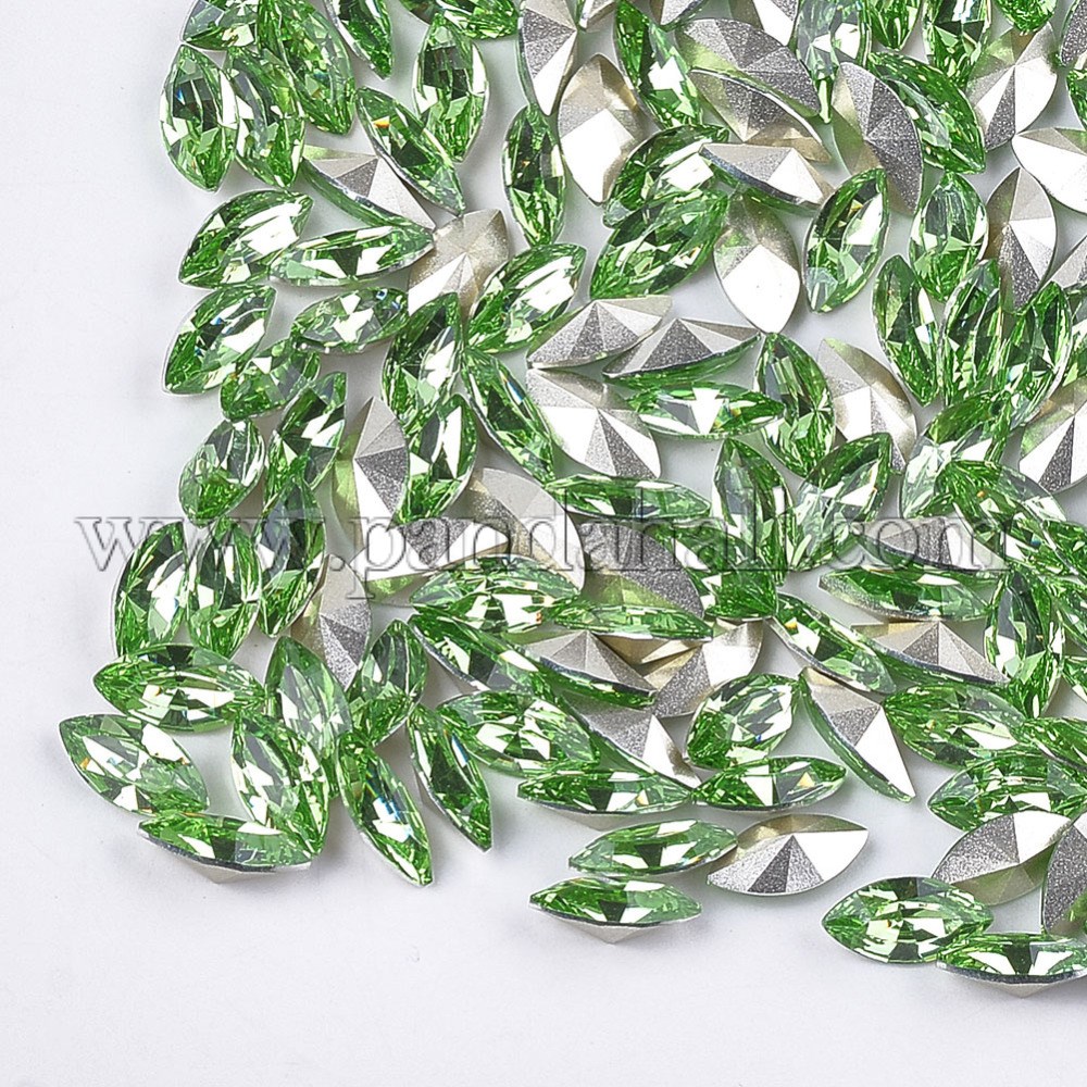 Pointed Back Resin Rhinestone Cabochons, Back Plated, Faceted, Horse Eye, PeridotSize: about 7.5~8mm long, 3.5~4mm wide, 2.5~3mm thick; about 2100pcs/bag.