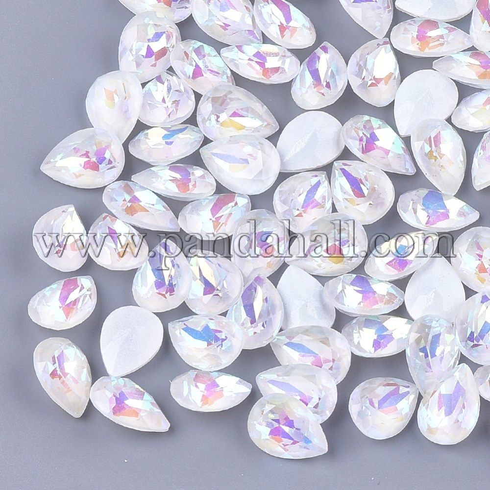 Pointed Back Resin Rhinestone Cabochons, Faceted, Drop, Creamy WhiteSize: about 9.5~10mm long, 6.5~7mm wide, 4~4.5mm thick; about 600pcs/bag.