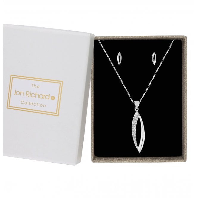 Polished And Cubic Zirconia Twist Pendant With Stud Earrings