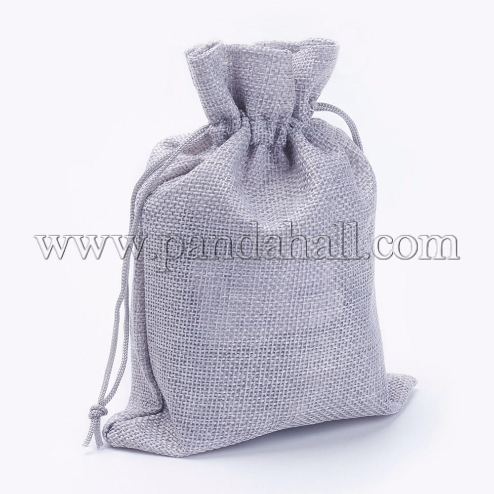 Polyester Imitation Burlap Packing Pouches Drawstring Bags, Gray, 13.5×9.5cm