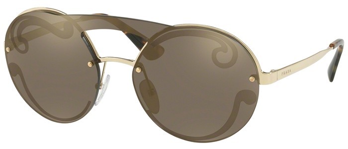 Prada 65T/S ZVN-ODW sunglasses in size 36 mm : Women’s, Pale Gold metal frame, Brown, Gold Mirror / Decoration plastic lenses, oval shaped. Product is brand new, 100% authentic, coming straight from the manufacturer and it comes with an original Prada carrying case, cleaning cloth and manufacturer’s booklet.