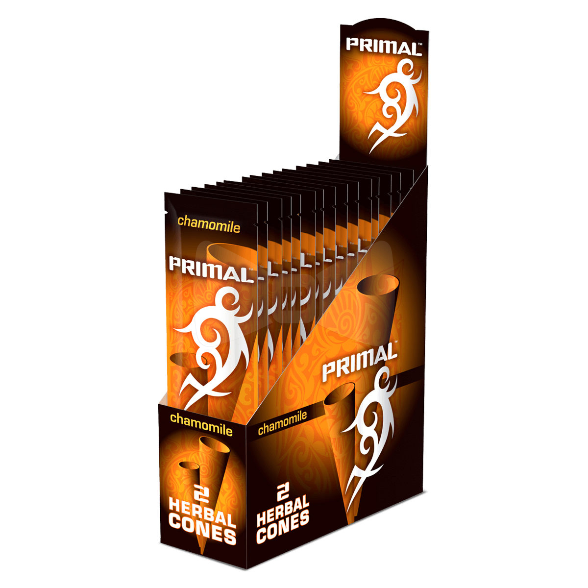 Primal Chamomile Cones are herbal, non-tobacco and nicotine free, offering smokers an amazing new experience similar to wraps and cigarillos, without the addictive and harsh qualities of tobacco. These hand-crafted, pre-rolled cones are made with the finest, natural herbs for smokers who prefer non-tobacco wraps without the hassle of rolling.