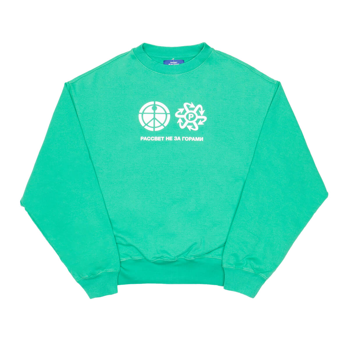 Green reflective print sweatshirt from the S/S2020 Rassvet collection This sweatshirt from Rassvet new collection comes in a regular fit. The crew neck sweatshirt, here in green, is made of cotton and features a reflective print at front.- Printed sweatshirt- Crew neck- Composition: 100% Cotton – Made in Turkey- Code: PACC6T024-GREEN
