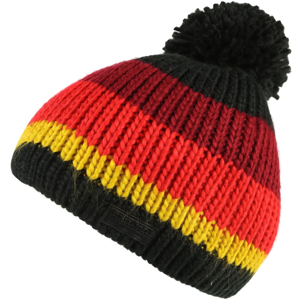 The Regatta Boys DAVIN Walking Winter Beanie Hat is made of 100% acrylic knit fabric. The beanie hat features knitted pom-pom that makes it look cuter. The beanie has tri-colour stripe patterns on the crown area. The hat has the Regatta badge on its hem., 100% acrylic knit., Knitted pom pom., 100% polyester fleece lining.